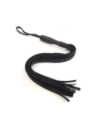 Ahşap Saplı Siyah Deri Flogger – Kontrolün ve Tutkunun Sesi