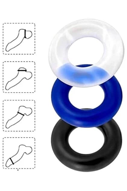 Performansınızı zirveye taşıyın ve kontrolü elinize alın! Bu özel üçlü penis halkası seti, kan akışını optimize ederek daha güçlü, daha sert ve çok daha uzun süreli bir ereksiyon sağlamak için tasarlandı. Siyah, mavi ve şeffaf renk seçenekleriyle sunulan bu halkalar, hem sizin hem de partnerinizin aldığı hazzı artırarak özel anlarınızı unutulmaz kılar.